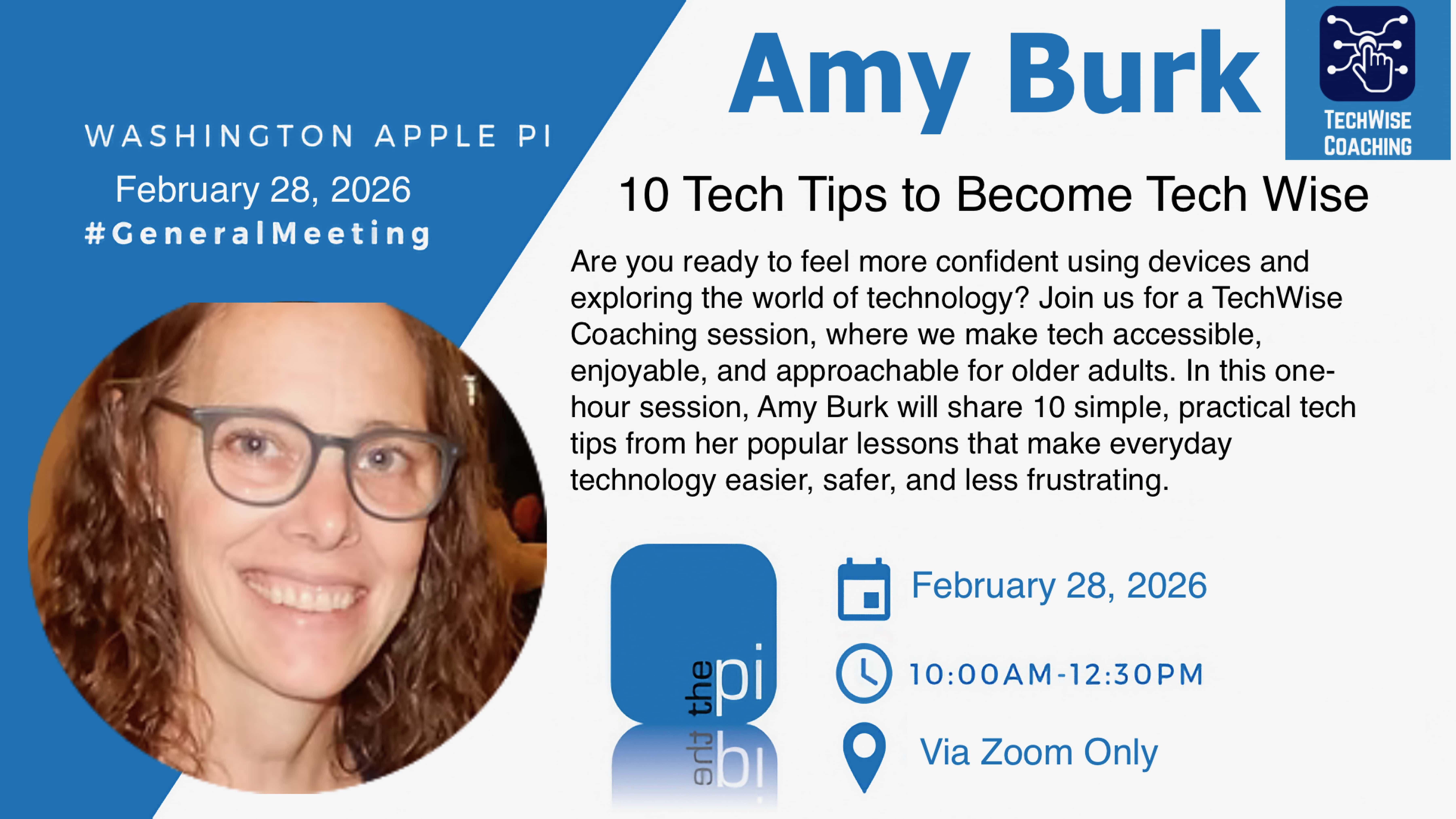 Are you ready to feel more confident using devices and exploring the world of technology? Join us for a TechWise Coaching session, where we make tech accessible, enjoyable, and approachable for older adults. In this one-hour session, Amy Burk will share 10 simple, practical tech tips from her popular lessons that make everyday technology easier, safer, and less frustrating.