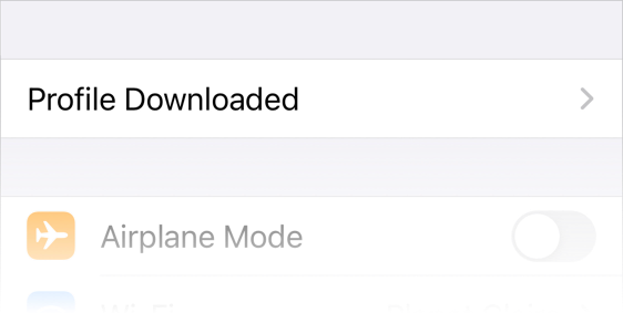 If the downloaded profile isn't opened automatically, open it now. It will load into the top of the Settings app, pending review and optional installation.