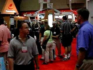 If you have never been to MacWorld, you have probably wondered what it is like. This clip, taken at the end of the last day (after the crowds had died down), shows the major activity: large numbers of people wandering back and forth, trying to find goodies. This is just a small portion of the entire exhibit area. 12 seconds, 1.7 mebabytes. Double-click on the image. If you want to download the image and not play it in your browser, press the Option key and click on Last Day. (Video by Lawrence I. Charters) |