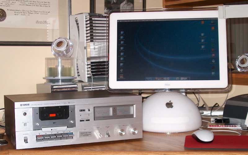 P3. Yamaha TC-520 cassette deck next to the G4 iMac, ready to record. (Photo by Mark Davis, taken with an HP Photosmart 812xi digital camera.)