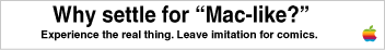 Legal fine print: these are not real Apple ads, these are parodies. In fact, we don't even admit to ever hearing of a computer company or recording company named Apple. But if a manufacturer of MacOS computers wants to use these, that's fine with us. And we admit to liking apple pie, motherhood, the American flag, truth and justice, and other basic laws of the universe. On the other hand, a Star Trek-like warp drive would sure be handy.